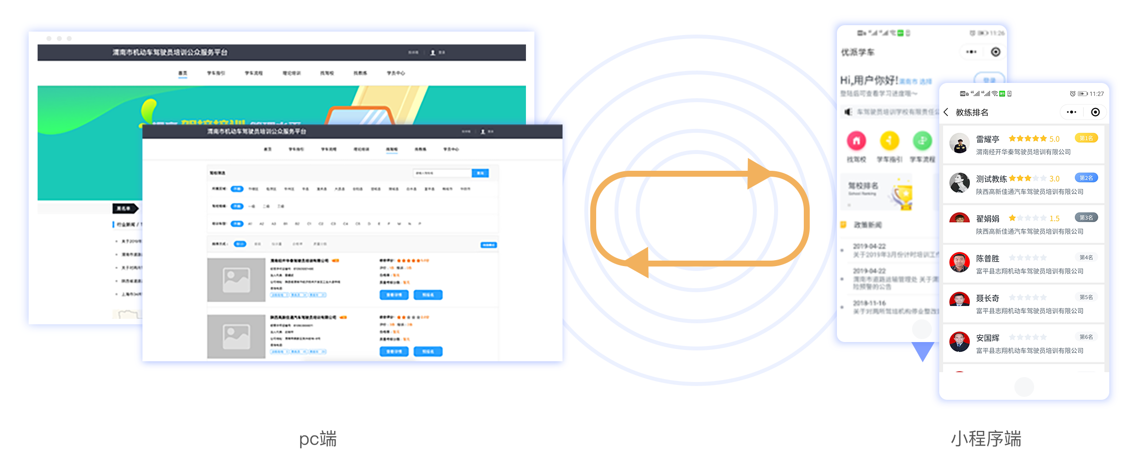 駕培公眾服務平臺是陜西導航科技有限公司推出的一款基于移動互聯網的應用,分為PC端以及移動端。該系統面向公眾提供駕校、教練評分等級查詢,面向駕校提供駕校風采狀況展示,面向學員提供學時查詢以及教練駕校評價。形成良好的學車閉環,為互聯網駕培模式提供可能。